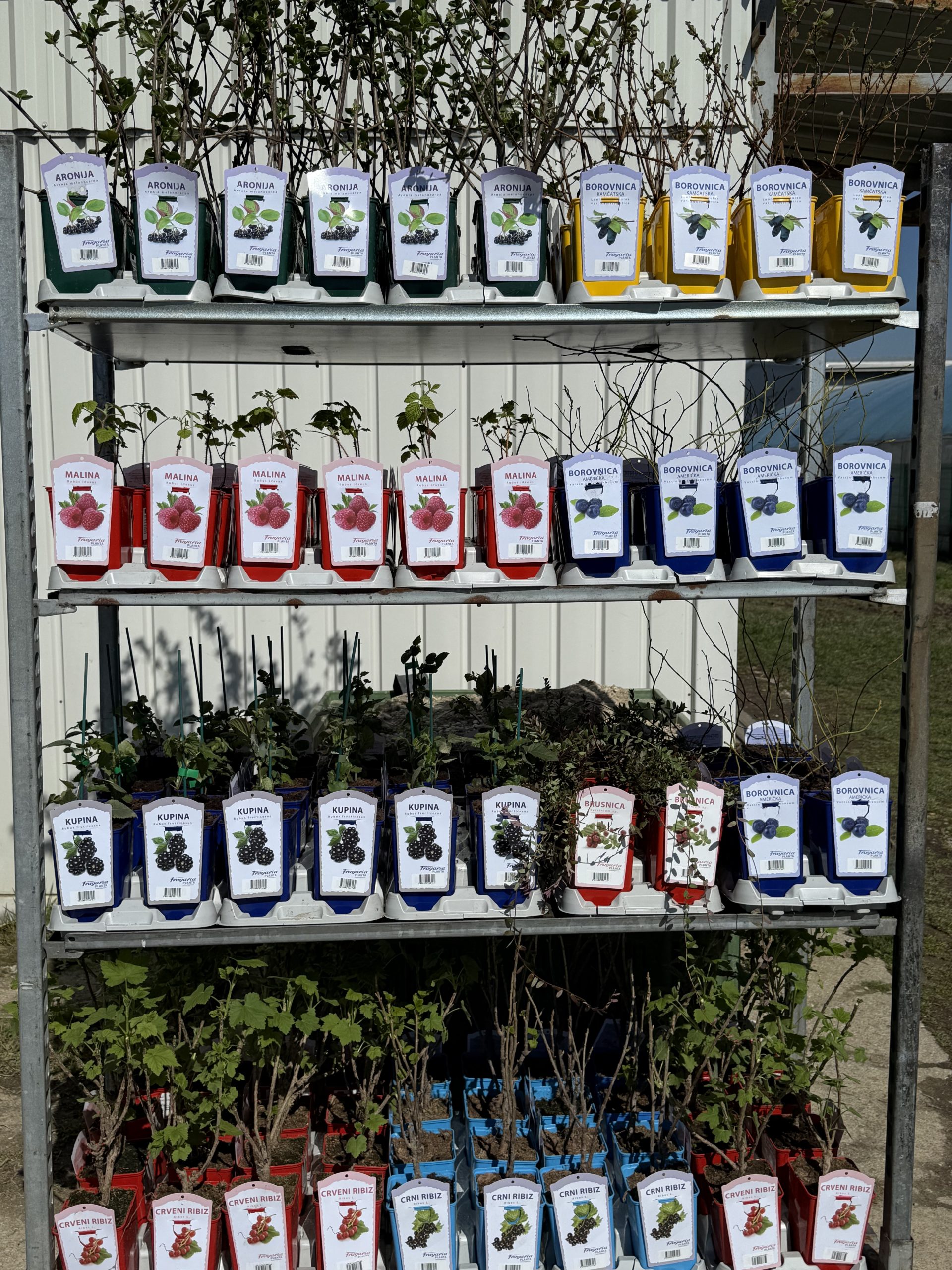 U svojoj ponudi imamo široku paletu sadnica golog korijena, loznih cjepova, kontejniranih sadnica, frigo sadnica jagoda, sadnice u kutijama za maloprodaju, te repromaterijal za proizvodnju i pakiranje voća.